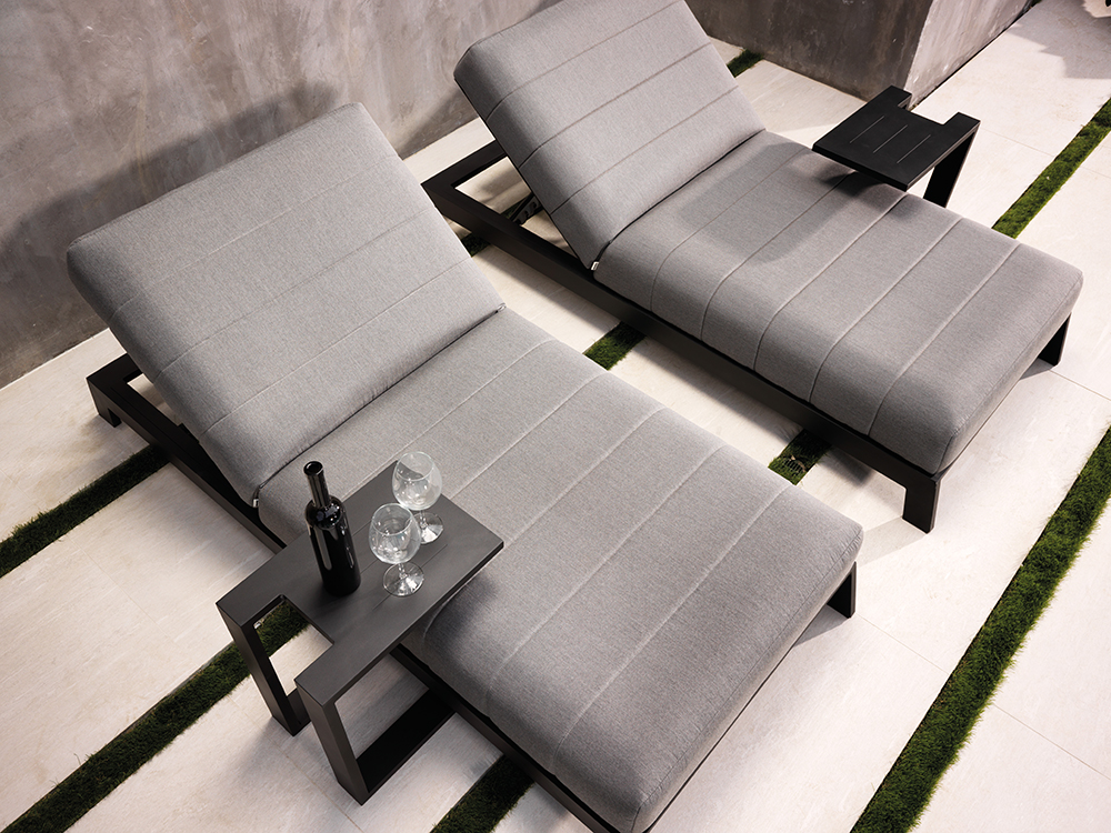 The collection TULUM proposes a sunbed which comes in one and two seaters. PODWER COATING COLORS